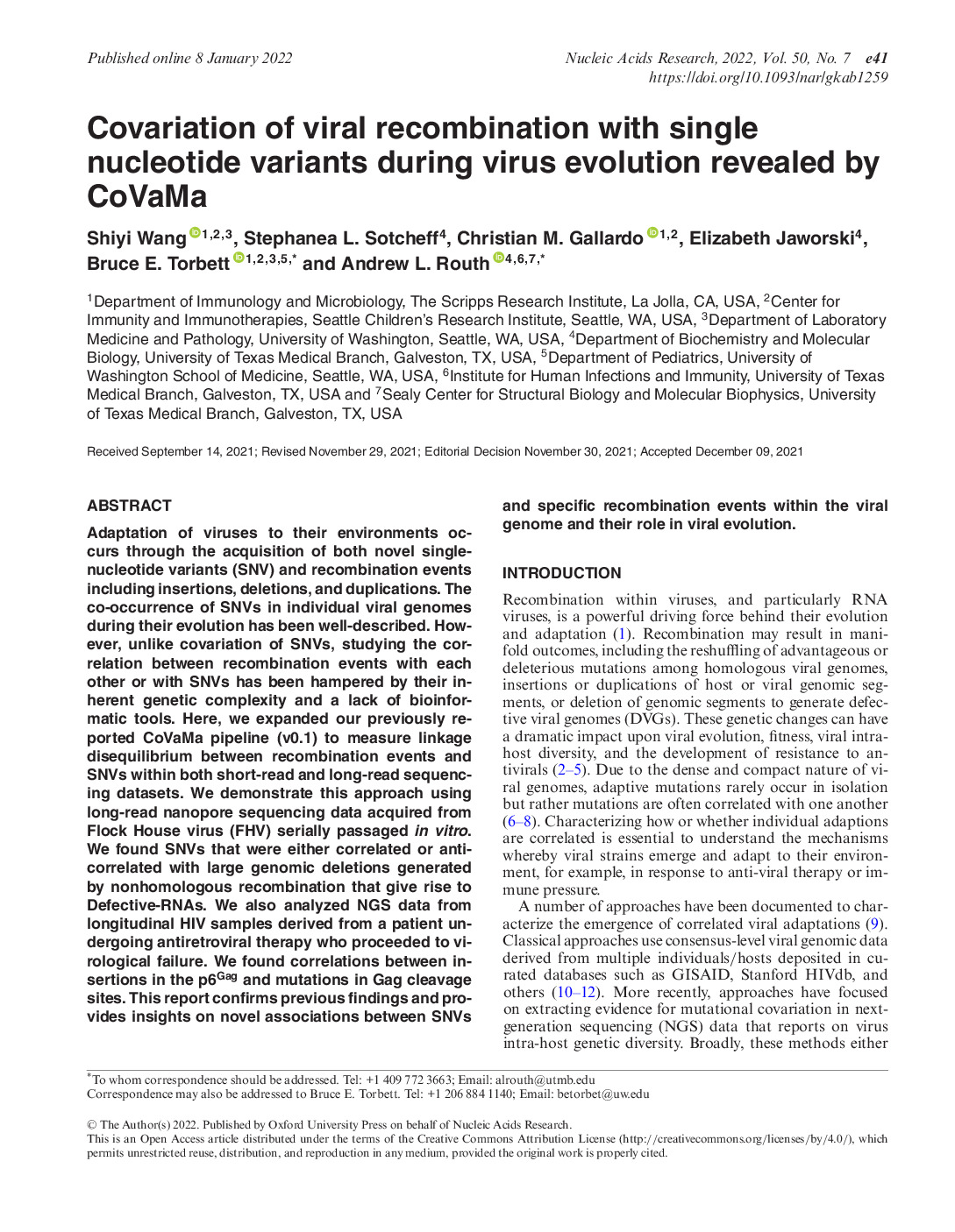 142. Sotcheff S, Zhou Y, Yeung J, Sun Y, Johnson JE, Torbett BE , Routh AL, ViReMa: a virus recombination mapper of next-generation sequencing data characterizes diverse recombinant viral nucleic acids, GigaScience, Volume 12, 2023, giad009, https://doi.org/10.1093/gigascience/giad009